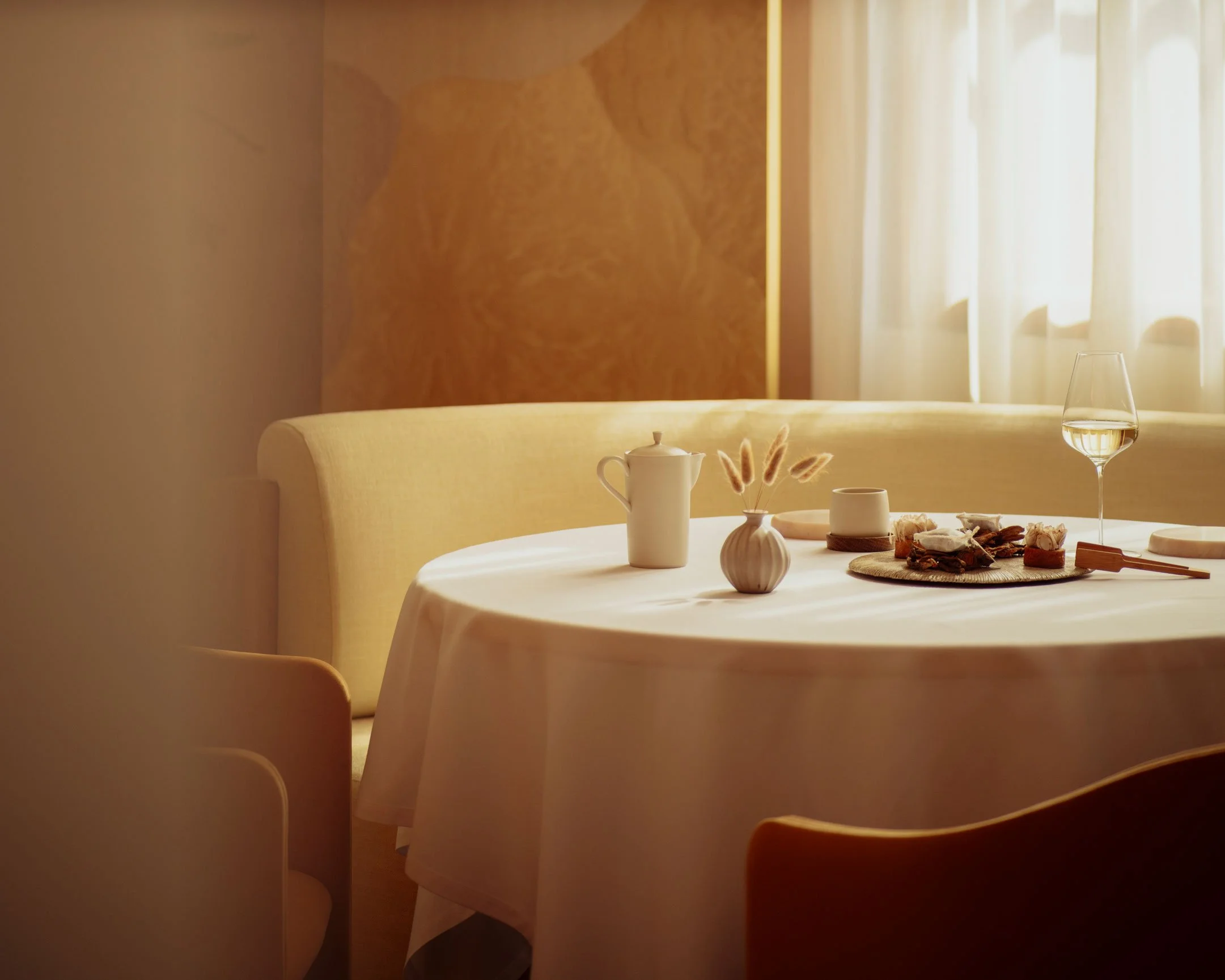 The collaboration anchored this gentle evolution in a deeper exploration of seasonality—not just as an ingredient philosophy, but as an experience of time. The work introduced new textures and palette shifts that felt fresh yet consistent with Odette’s established precision. Each decision was made with sensitivity to the restaurant’s existing equity.